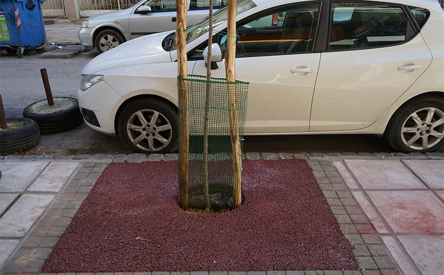 Ταυτόχρονα, για πρώτη φορά σε τόσο μεγάλη κλίμακα, σε όλες τις δενδροδόχους της οδού Κρήτης θα πραγματοποιηθεί πλήρωση με χυτό ρητινούχο υλικό, το οποίο είναι υδροπερατό και επιτρέπει τον αερισμό των ριζών.