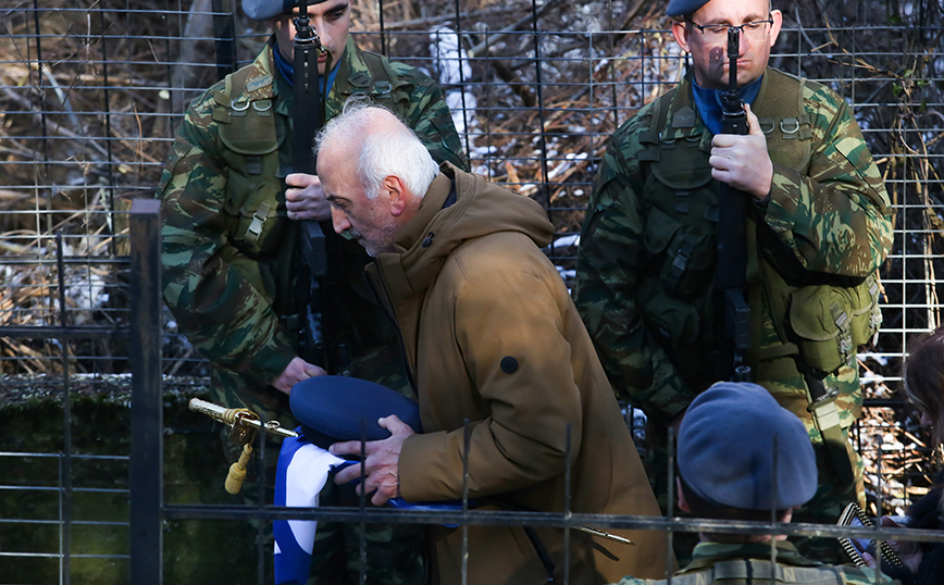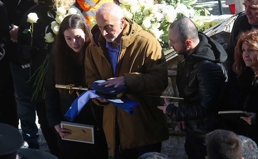 Επίσης, στο τελευταίο «αντίο» πάνω από το μνήμα του άτυχου πιλότου, ο Κυριάκος Μητσοτάκης σε μια κίνηση παρηγοριάς άγγιξε στον ώμο τον πατέρα του σμηναγού, ο οποίος κηδεύτηκε με τον βαθμό του αντιπτεράρχου.