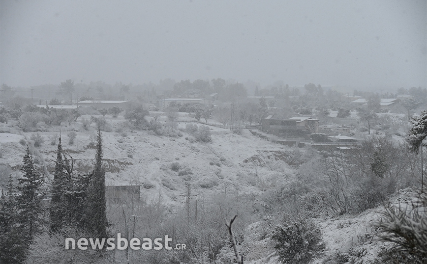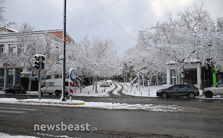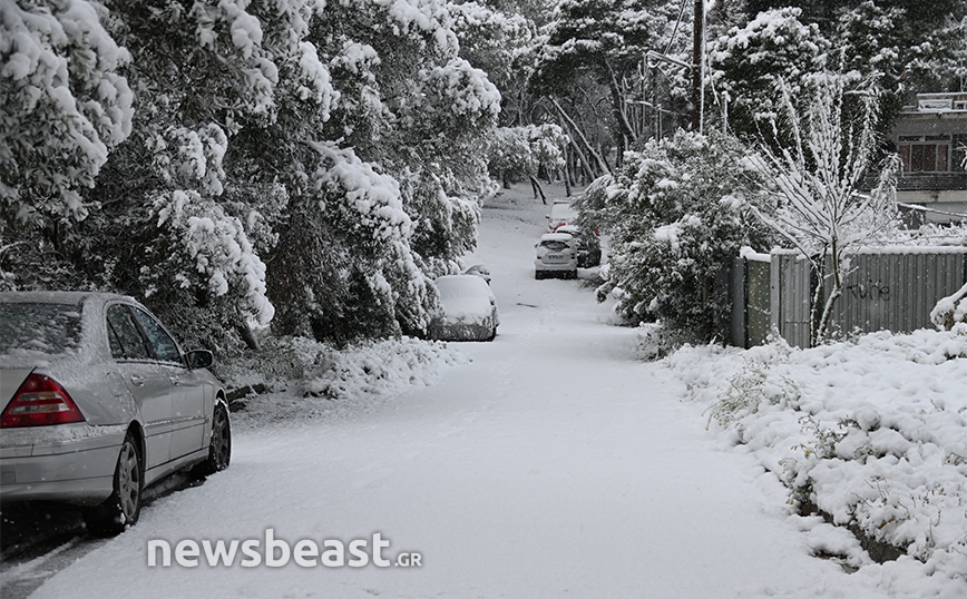 Στα λευκά ντύθηκαν αρκετές περιοχές της Αττικής εξαιτίας της κακοκαιρίας Μπάρμπαρα, η οποία συνεχίζει την επέλασή της. Εντυπωσιακές είναι οι φωτογραφίες του Newsbeast από την Κηφισιά.