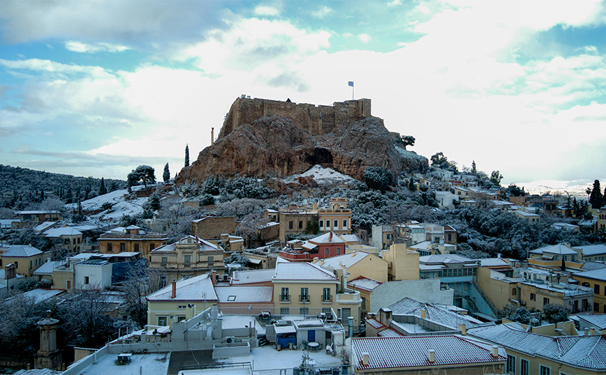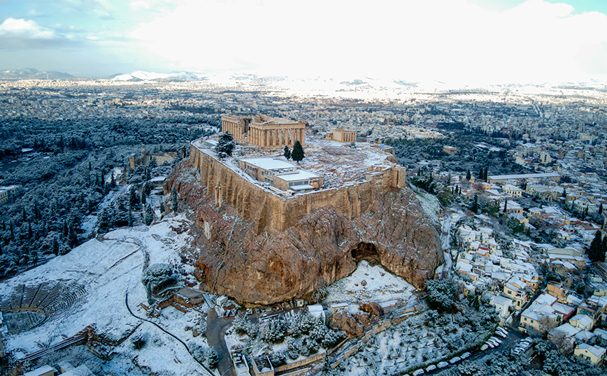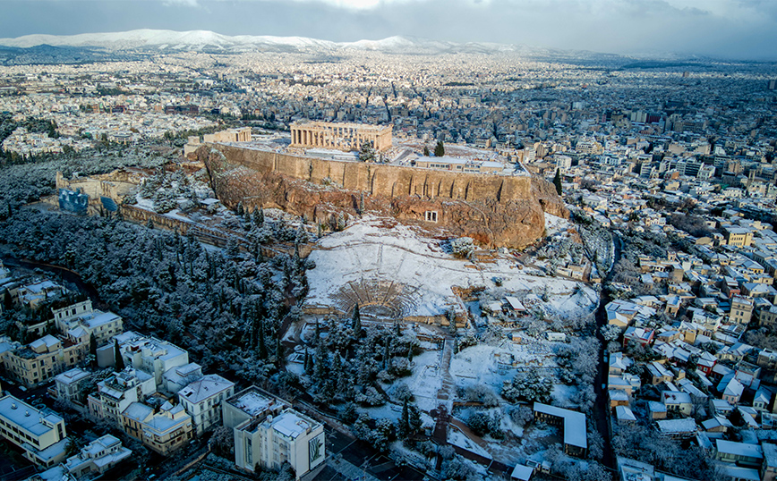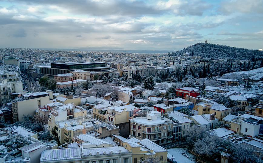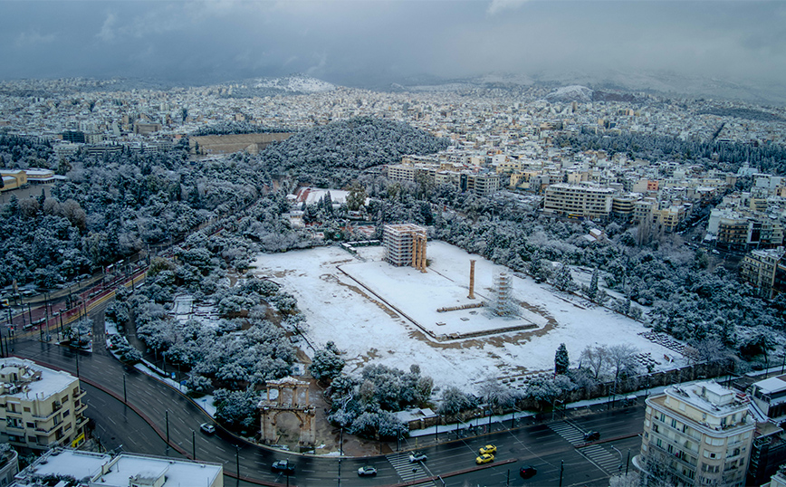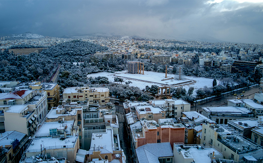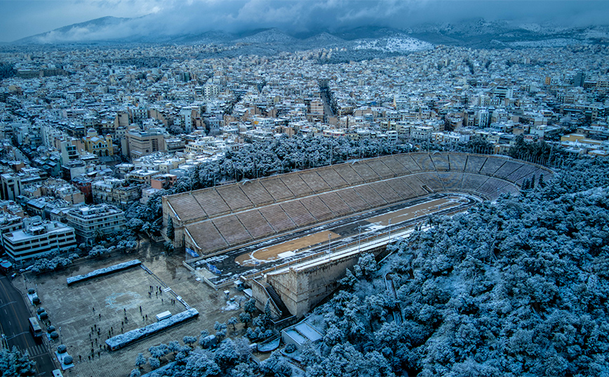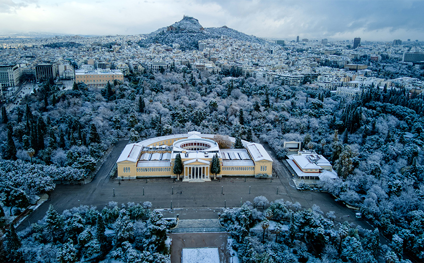 Η κακοκαιρία Μπάρμπαρα έφερε χιόνια και στο κέντρο της Αθήνας με τις φωτογραφίες της χιονισμένης πόλης, τραβηγμένες από ψηλά, να εντυπωσιάζουν. Το Καλλιμάρμαρο, το Ζάππειο, η Ακρόπολη ντύθηκαν στα λευκά κάνοντας το κέντρο της Αθήνας να θυμίζει πίνακα ζωγραφικής.