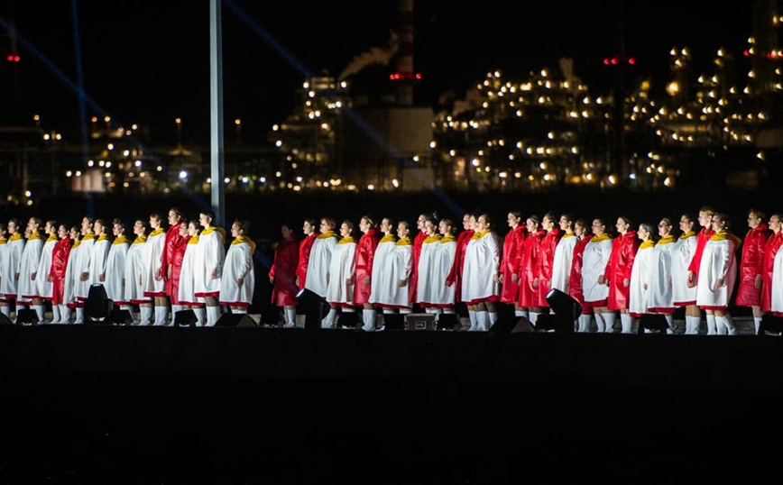 Μια πολυδιάστατη παραγωγή σε σύλληψη / ιδέα του Γενικού Καλλιτεχνικού Διευθυντή της διοργάνωσης, Μιχαήλ Μαρμαρινού και σκηνοθεσία του διακεκριμένου Βρετανού σκηνοθέτη Chris Baldwin, που προσέλκυσε περισσότερους από 15.000 επισκέπτες από την Ελευσίνα, την Αττική κι όλον τον κόσμο, και 3.000.000 θεατές, που την παρακολούθησαν μέσω δορυφόρου από το τηλεοπτικό δίκτυο της ΕΡΤ.