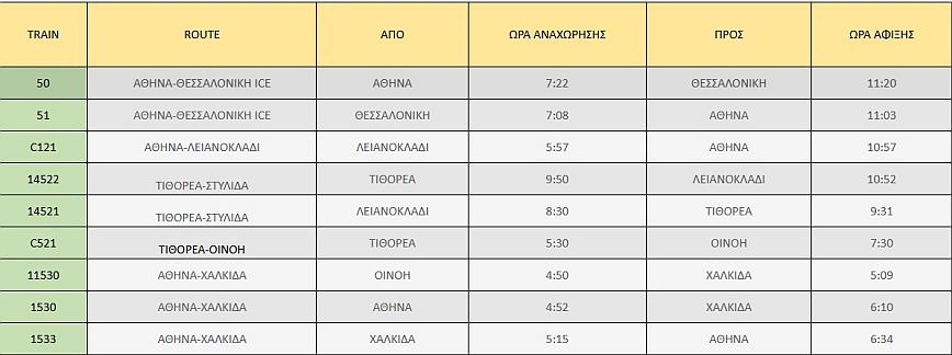 - 06:47 Για λόγους κυκλοφορίας τα δρομολόγια των αμαξοστοιχιών 3532 και 3537 στο τμήμα Χαλκίδα – Οινόη θα υποκατασταθούν με λεωφορεία