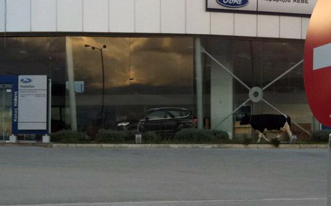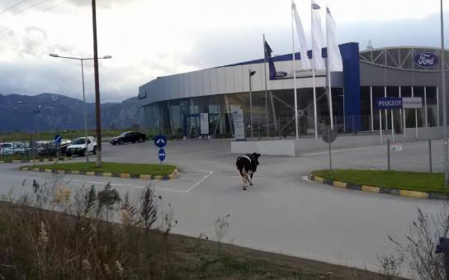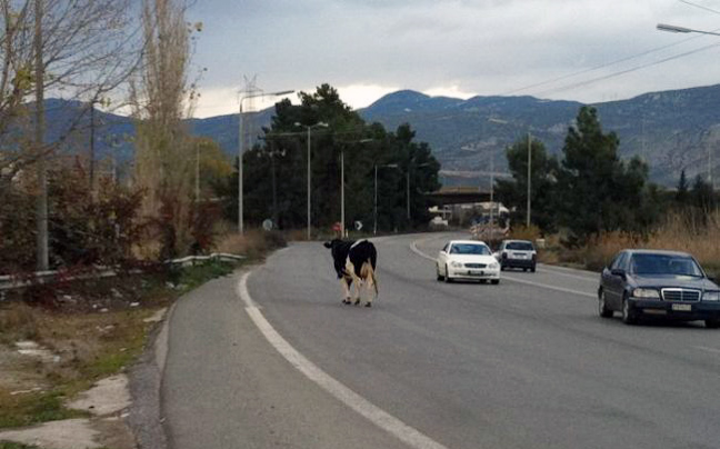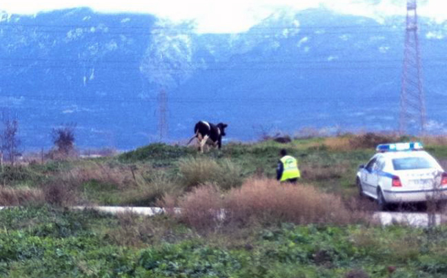 Οι αστυνομικοί χθες ανέλαβαν χρέη κάουμποϋ για να διώξουν τις αγελάδες από την εθνική. Τα κατάφεραν, αλλά αφού πρώτα αυτές έκαναν τις βόλτες τους σε διάφορα μέρη!