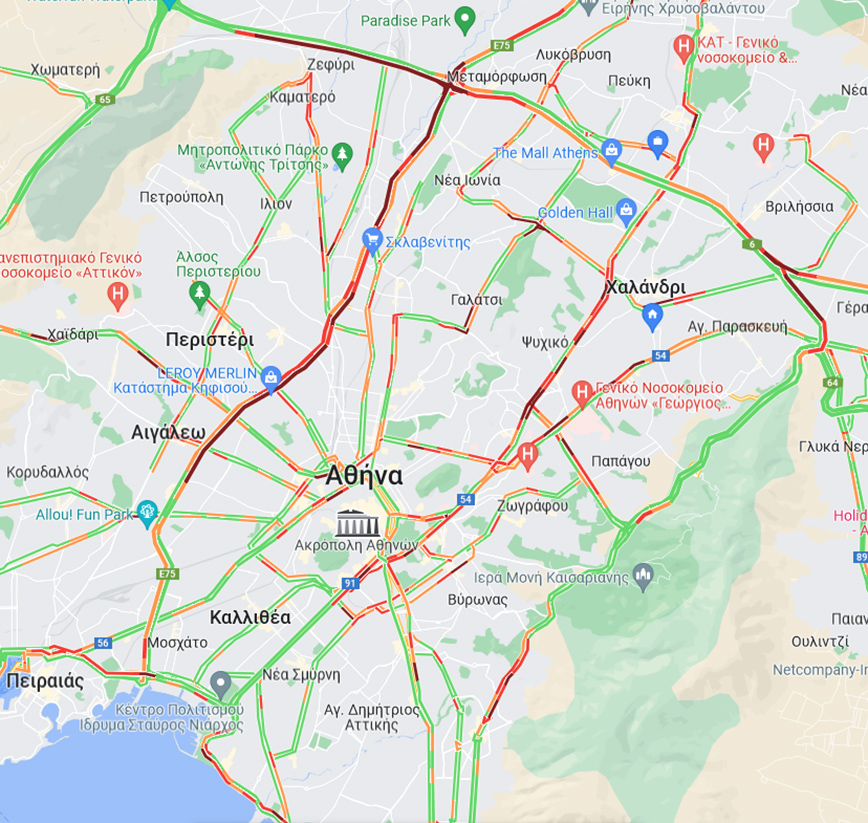 Ο χάρτης με την κίνηση τώρα στους δρόμους…