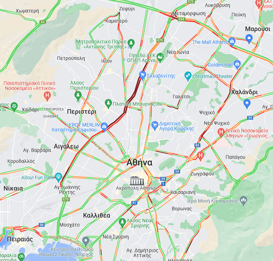 Ο χάρτης με την κίνηση τώρα στους δρόμους…