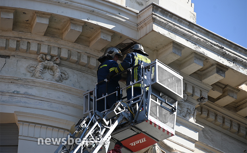 Στο σημείο έσπευσαν πυροσβέστες με γερανοφόρο όχημα και ξεκόλλησαν εντελώς το κομμάτι που κρεμόταν προκειμένου να μην υπάρξει κίνδυνος για τους περαστικούς.