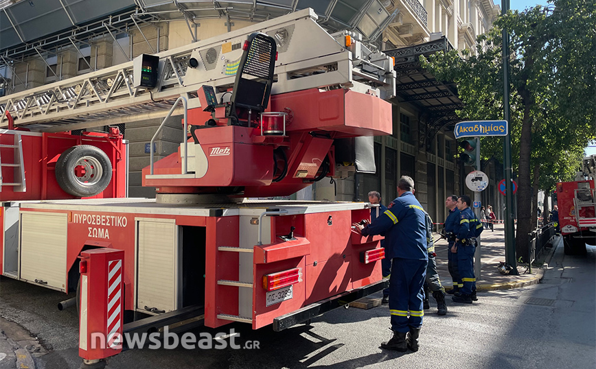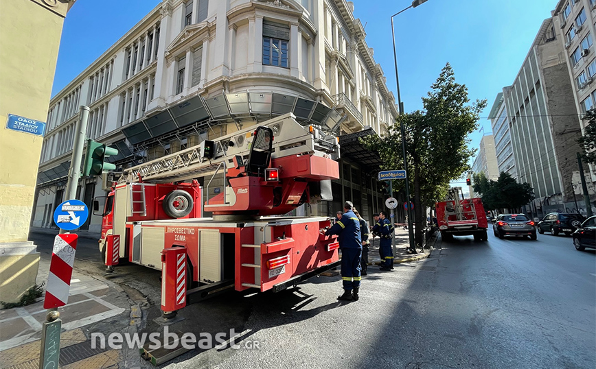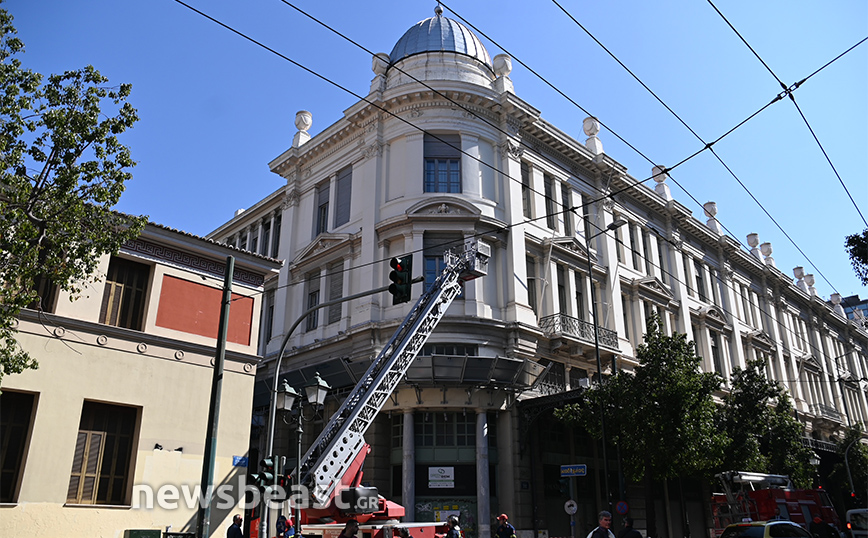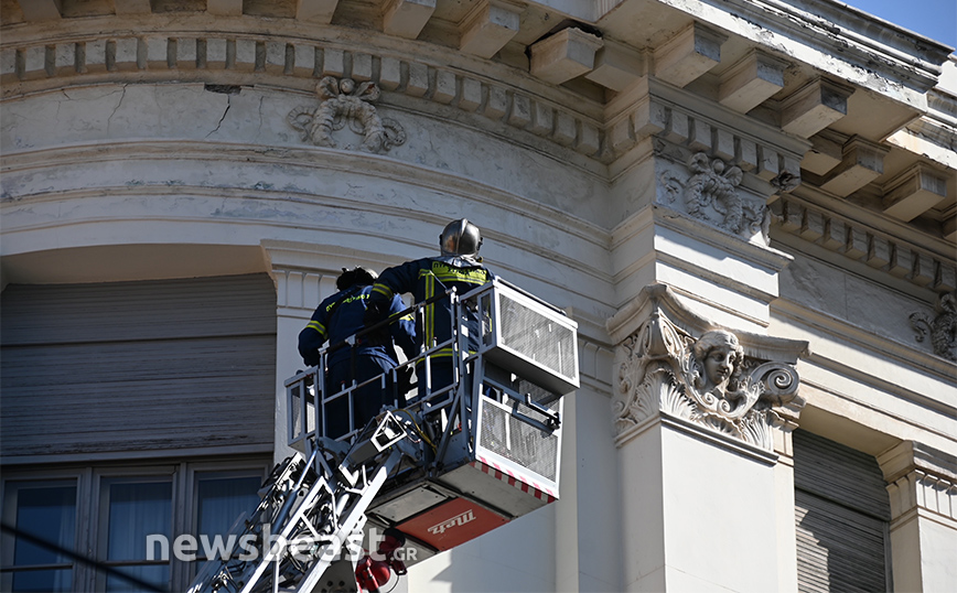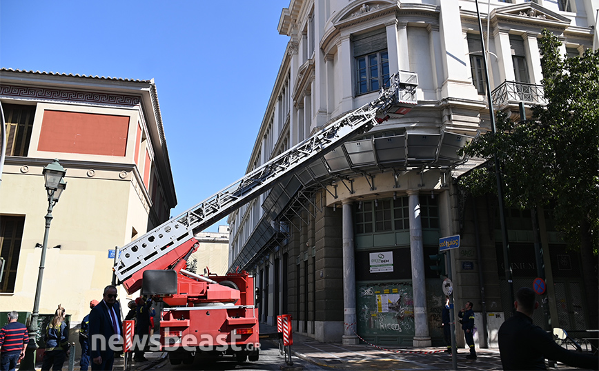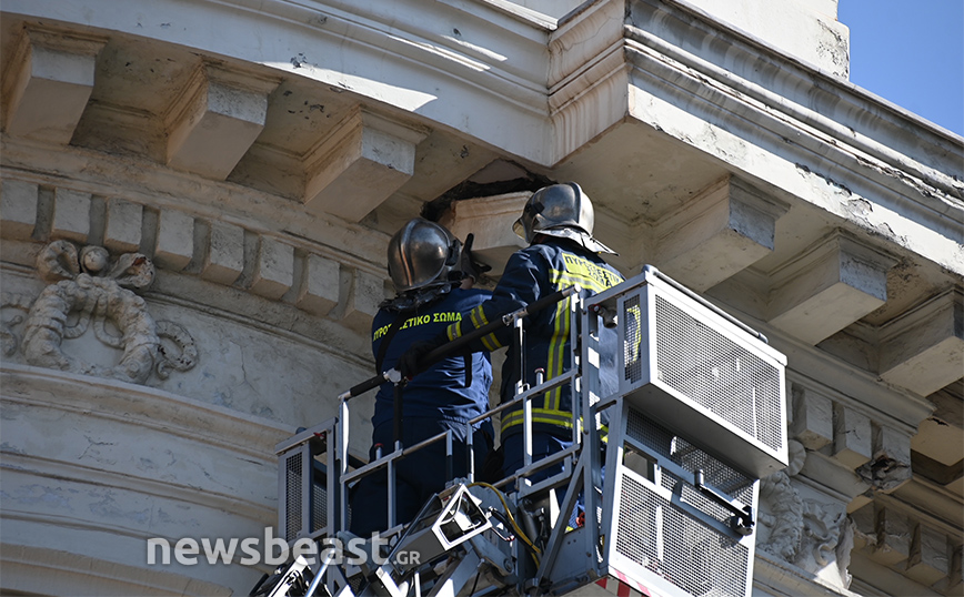 Ένας πολίτης ειδοποίησε την Πυροσβεστική σήμερα το πρωί ότι ένα κομμάτι από κτίριο στην οδό Σταδίου 41 στο κέντρο της Αθήνας είχε ξεκολλήσει και κρεμόταν.