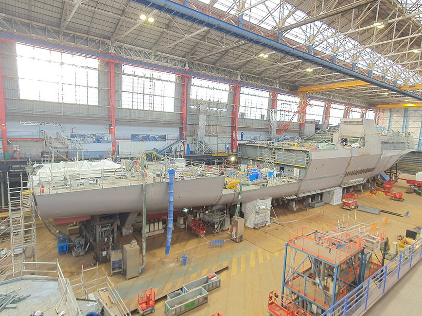 Με εντατικούς ρυθμούς συνεχίζεται η κατασκευή της ελληνικής φρεγάτας Belhara στη Γαλλία και συγκεκριμένα στα ναυπηγεία της Naval Group στο Λοριάν, με την εταιρεία να δίνει στη δημοσιότητα νέες εικόνες από το πλοίο.