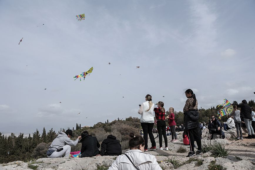 Πολύχρωμοι χαρταετοί γέμισαν τον ουρανό της πρωτεύουσας για την Καθαρά Δευτέρα, με εκατοντάδες Αθηναίες κι Αθηναίους να δίνουν ραντεβού στον Λόφο του Φιλοπάππου, κάνοντας πικ-νικ με σαρακοστιανά εδέσματα και συμμετέχοντας σε ένα μεγάλο παραδοσιακό γλέντι που διοργάνωσε ο Δήμος Αθηναίων.