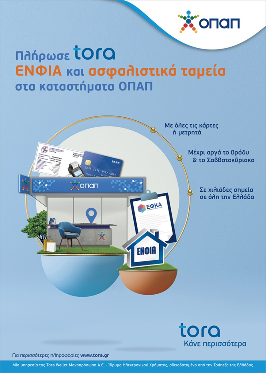 «Οι πελάτες μας στα καταστήματα ΟΠΑΠ, μέσω της υπηρεσίας Tora Wallet, μπορούν να πληρώνουν τις υποχρεώσεις τους εύκολα και γρήγορα, αποφεύγοντας τις μεγάλες ουρές και την αναμονή. Οι πληρωμές γίνονται είτε με μετρητά, είτε μέσω χρεωστικής, πιστωτικής ή προπληρωμένης κάρτας», τονίζει ο κ. Κωνσταντίνος Καλλιγιαννάκης, ιδιοκτήτης καταστήματος ΟΠΑΠ στον Άλιμο επί της Λεωφόρου Λοχαγού Χρονόπουλου 52.