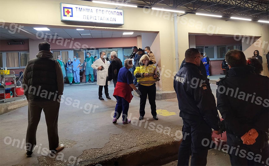 Σκηνές αρχαίας τραγωδίας εκτυλίσσονται από τα ξημερώματα έξω από τα Τμήματα Επειγόντων Περιστατικών των δύο νοσοκομείων της Λάρισας, Γενικού και Πανεπιστημιακού, όπου μεταφέρονται επιβάτες των τρένων μετά τη σύγκρουση στα Τέμπη.