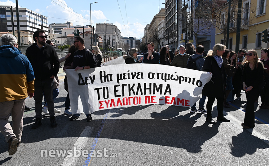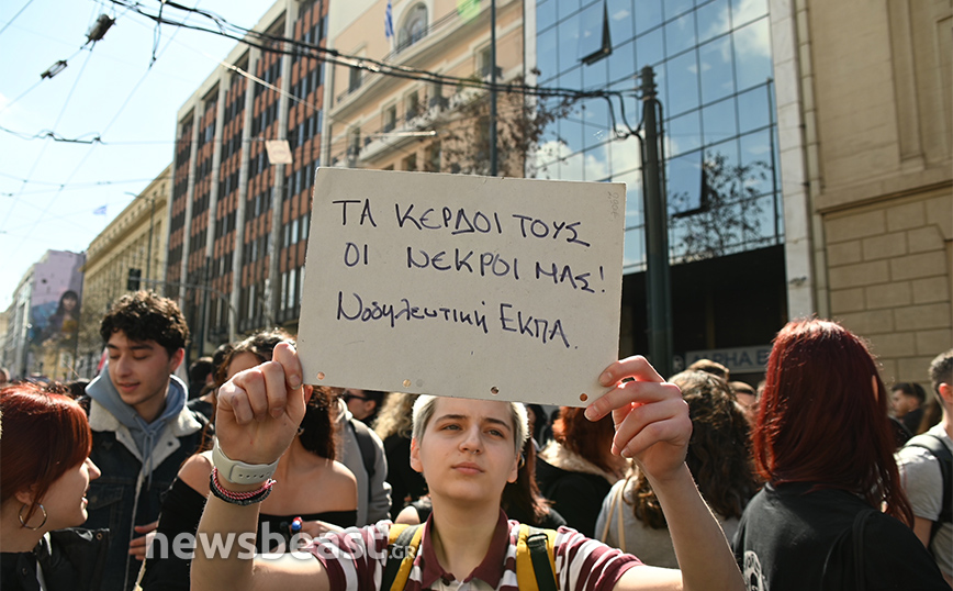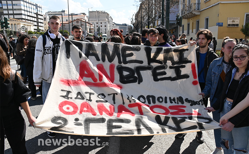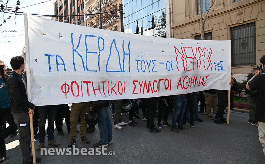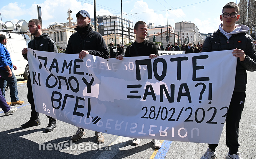 «Για τα παιδιά στα Τέμπη… Για τις οικογένειές τους… Και για εμάς..», ανέφερε το κάλεσμα της Συντονιστικής Επιτροπής Μαθητών Αθήνας. «Το έγκλημα αυτό να μη συγκαλυφθεί. Όλων των νεκρών θα γίνουμε η φωνή» επισημαίνει το πανό που κρατούν στα χέρια τους οι μαθητές και οι φοιτητές.