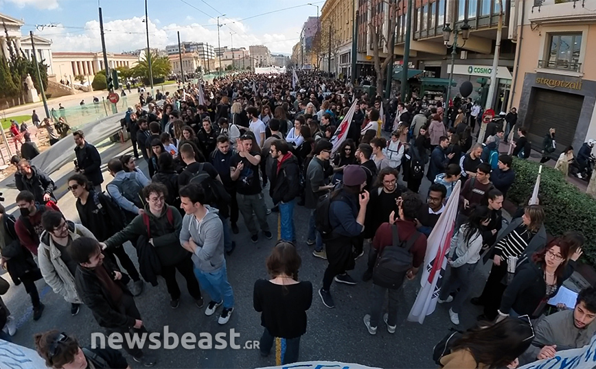 Κρατώντας μαύρα μπαλόνια και φωνάζοντας συνθήματα μαθητές και φοιτητές πραγματοποιηθούν διαμρτυρία στο κέντρο της Αθήνας, ζητώντας δικαίωση για τους νεκρούς στα Τέμπη. Το ραντεβού δόθηκε στα Προπύλαια περίπου στις 12:30 το μεσημέρι της Παρασκευής και στη συνέχεια ξεκίνησε πορεία στο κέντρο της Αθήνας.