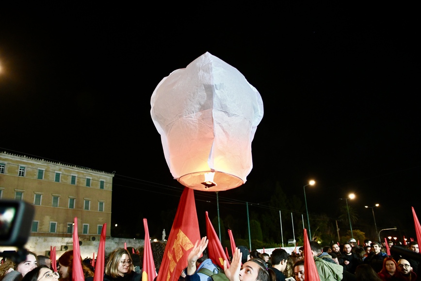 Λίγο πριν το τέλος της συγκέντρωσης οι συμμετέχοντες άφησαν στον ουρανό φαναράκια για να τιμήσουν τη μνήμη των θυμάτων.