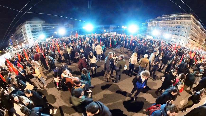 Συγκέντρωση διαμαρτυρίας για το σιδηροδρομικό δυστύχημα στα Τέμπη που στέρησε τη ζωή σε δεκάδες ανθρώπους πραγματοποιεί η ΚΝΕ μπροστά από τη Βουλή. «Η οργή που νιώθουμε, θα γίνει ποτάμι αγώνα» είναι ένα από τα συνθήματων όσων συμμετέχουν και ζητούν δικαιοσύνη.