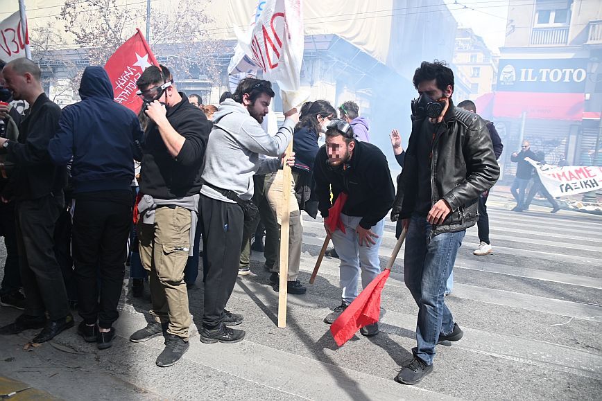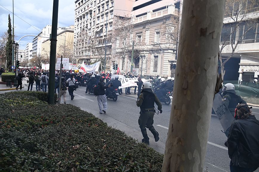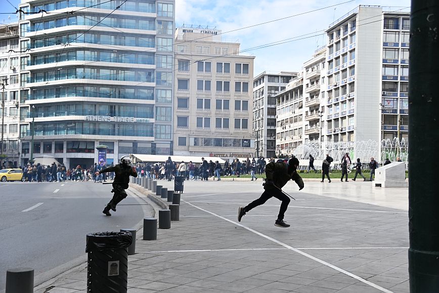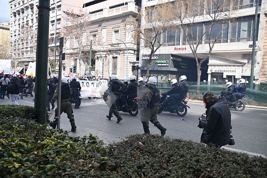 Επεισόδια σημειώθηκαν στην πλατεία Συντάγματος, στο πλαίσιο της συγκέντρωσης για την τραγωδία των Τεμπών.