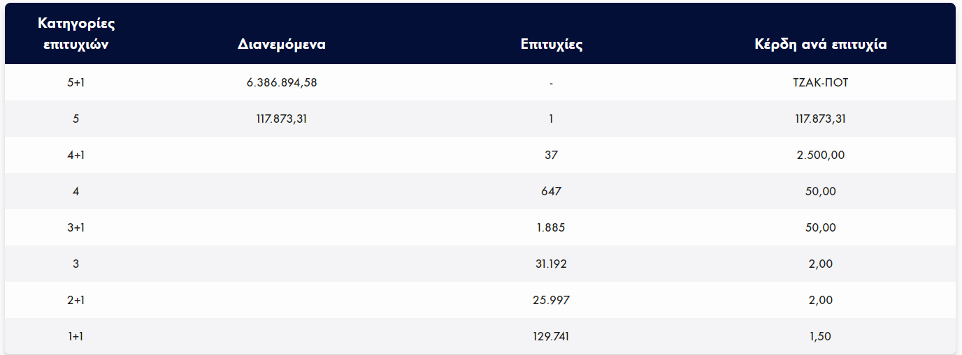 Στην κλήρωση σημειώθηκε τζακ ποτ.