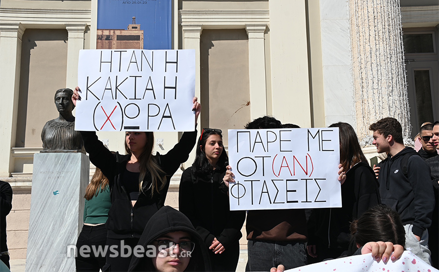 «Μας σκότωσαν τα όνειρα», «Κουπόνια ζωής, εισιτήρια θανάτου», «Οι νεκροί μας τα κέρδη σας» γράφουν τα πανό που κρατάνε μαθητές έξω από το Δημοτικό Θέατρο Πειραιά, σε μια συγκέντρωση διαμαρτυρίας για το σιδηροδρομικό δυστύχημα με τους 57 νεκρούς στα Τέμπη. Οι μαθητές κάνουν πορεία προς τον ΗΣΑΠ και αυτή τη στιγμή είναι κλειστή η Ηρώων Πολυτεχνείου.