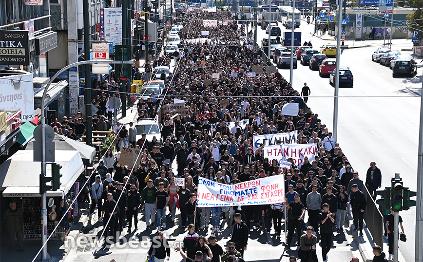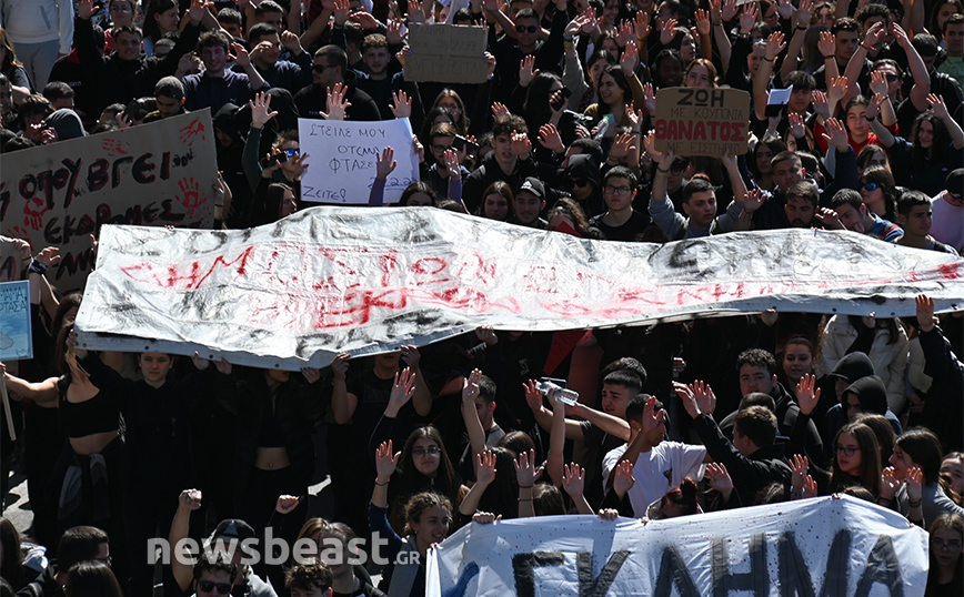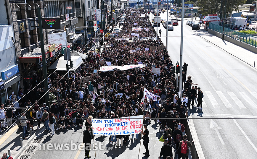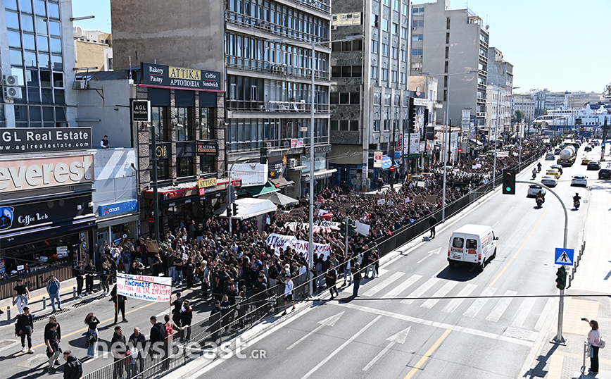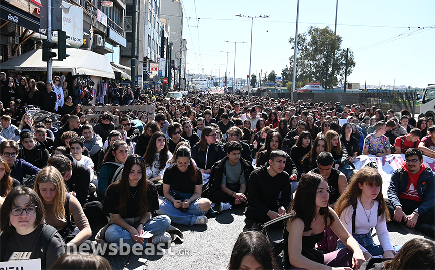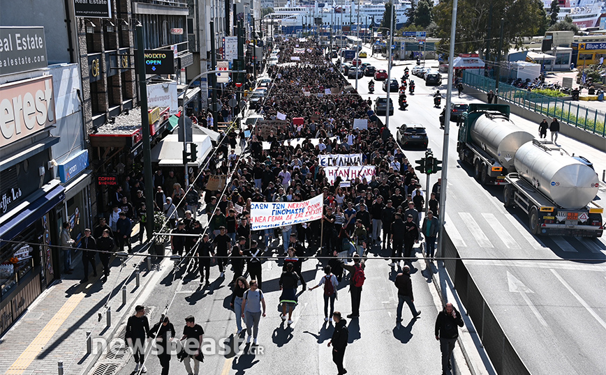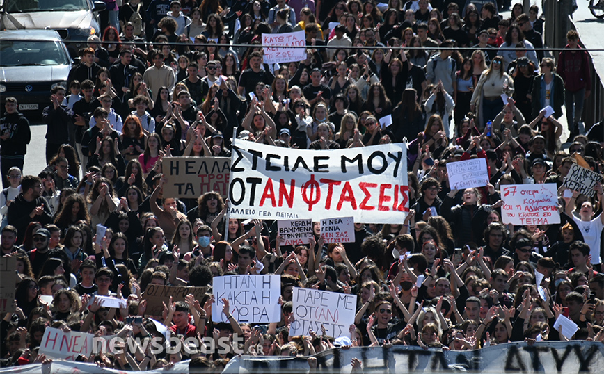 Ένα ποτάμι νέων ανθρώπων ξεκίνησε από το Δημοτικό Θέατρο Πειραιά, κρατώντας πανό με τη φράση «Στείλε όταν φτάσεις» και συνθήματα όπως «Μας σκοτώσατε τα όνειρα» και έκανε πορεία προς τον ΗΣΑΠ, διακόπτωντας την κυκλοφορία. Οι μαθητές άφησαν λουλούδια στην πύλη του Προαστιακού.