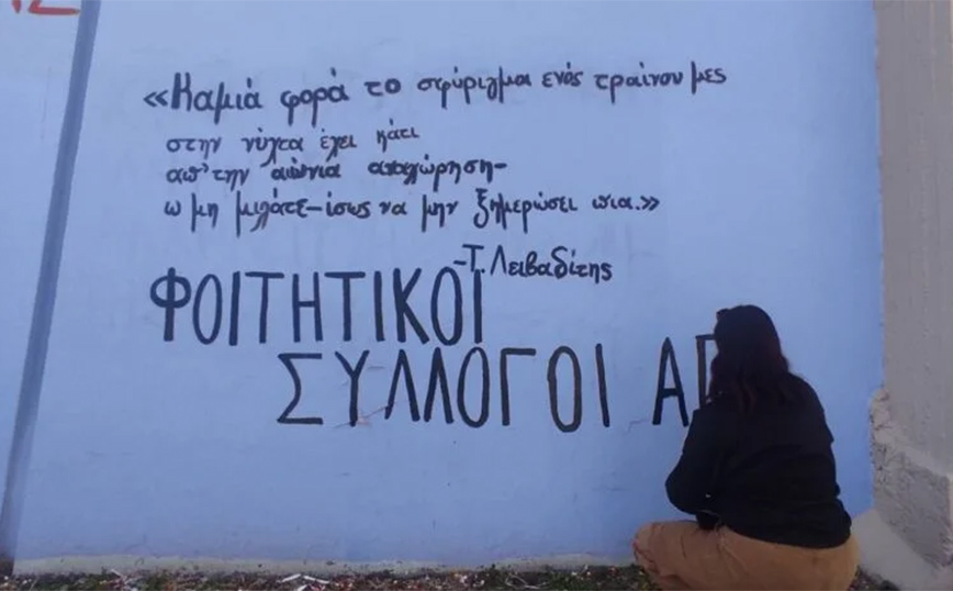 Σήμερα 6/3 ομάδα φοιτητών κάλυψε με μαύρο πανί, σε ένδειξη πένθους, το άγαλμα του Αριστοτέλη πίσω από την αίθουσα τελετών του ΑΠΘ. Μάλιστα, ορισμένοι έγραψαν συνθήματα στους τοίχους με κόκκινες και μαύρες μπογιές όπως «δεν σας ξεχνάμε». Μέσα στο ΑΠΘ οι φοιτητές έφτιαξαν μία πινακίδα στην οποία αναγράφονται τα ονόματα των νεκρών φοιτητών και δίπλα η ηλικία και η σχολή που φοιτούσαν, ενώ πάνω αναγράφεται: «Δεν σας ξεχνάμε”» αναφέρει το thestival.gr.