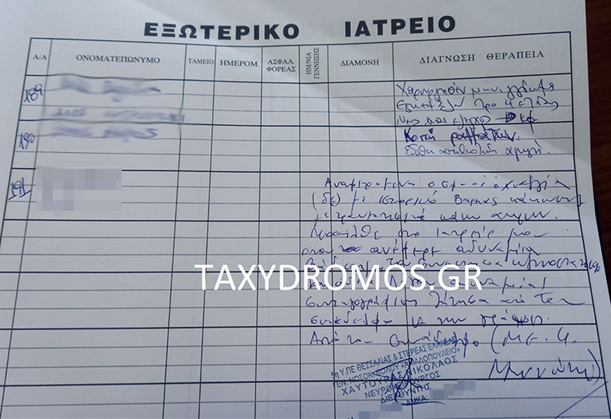Το taxydromos.gr εξασφάλισε αποκλειστικά το παραπεμπτικό που φέρει την υπογραφή του Διευθυντή της Νευροχειρουργικής Κλινικής του Νοσοκομείο Βόλου, Νίκου Χαυτούρα.