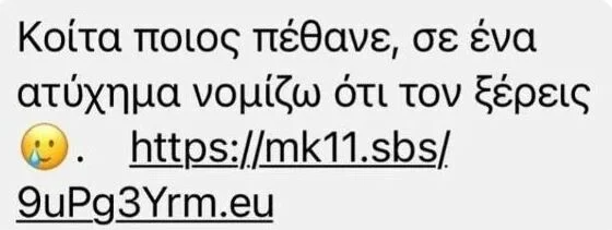 Το μήνυμα γράφει: «Κοίτα ποιος πέθανε σε ένα ατύχημα, νομίζω ότι τον ξέρεις» και συνοδεύεται από ένα θλιμμένο emoji.
