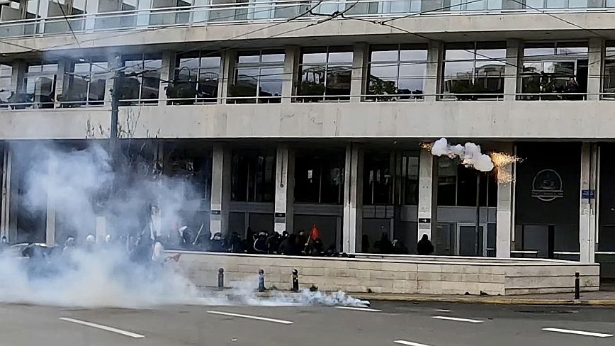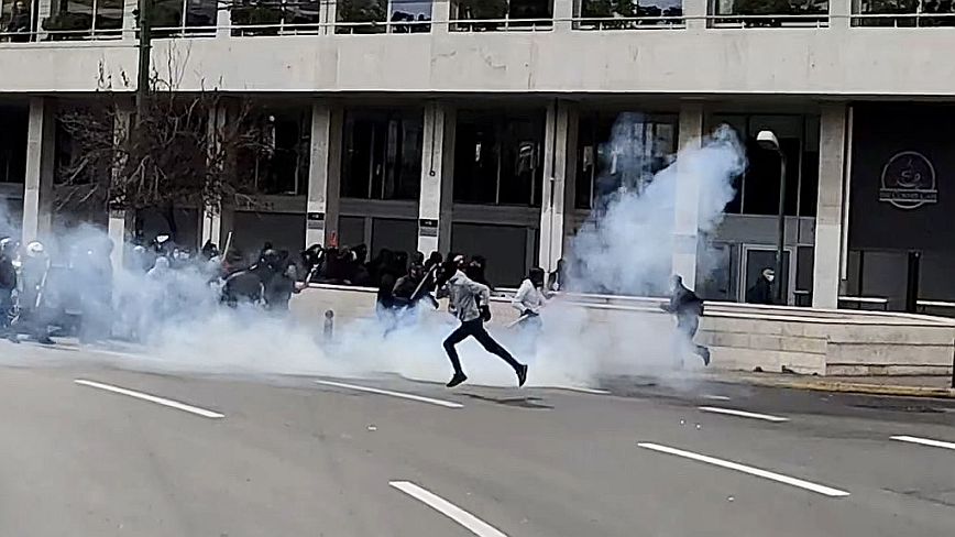 Επεισόδια σημειώθηκαν έξω από το Μετρό Καραϊσκάκη κατά τη διάρκεια της πορείας προς τα γραφεία του ΟΣΕ, στο πλαίσιο του συλλαλητηρίου στο κέντρο της Αθήνας για την τραγωδία στα Τέμπη.
