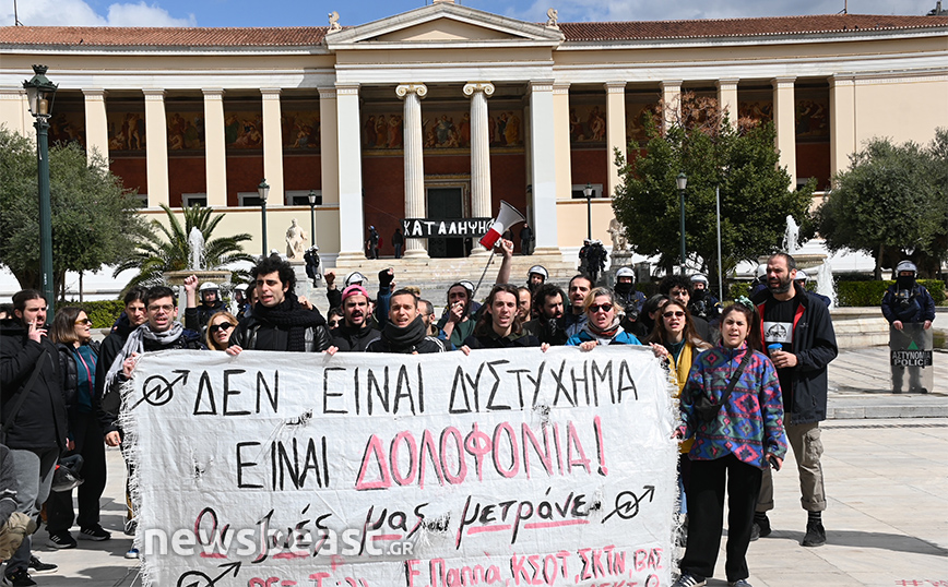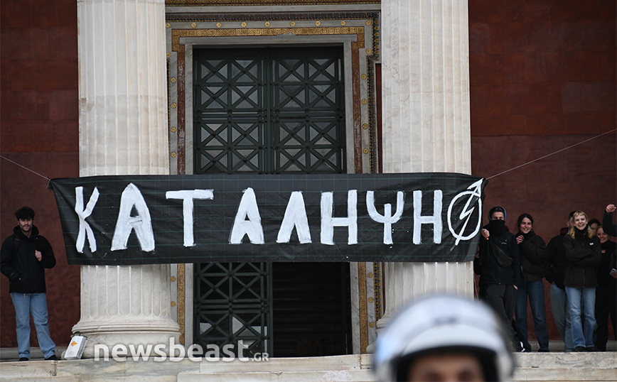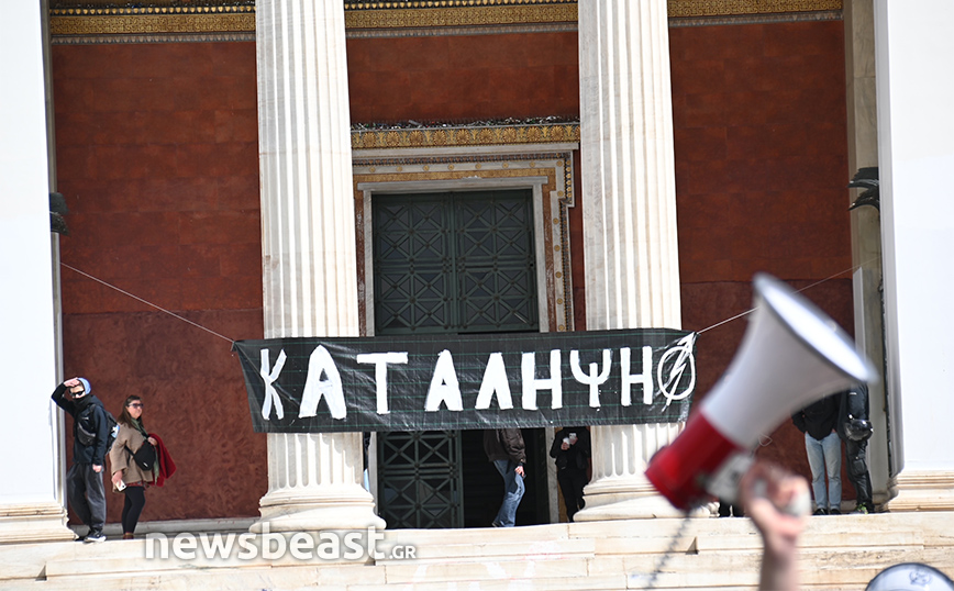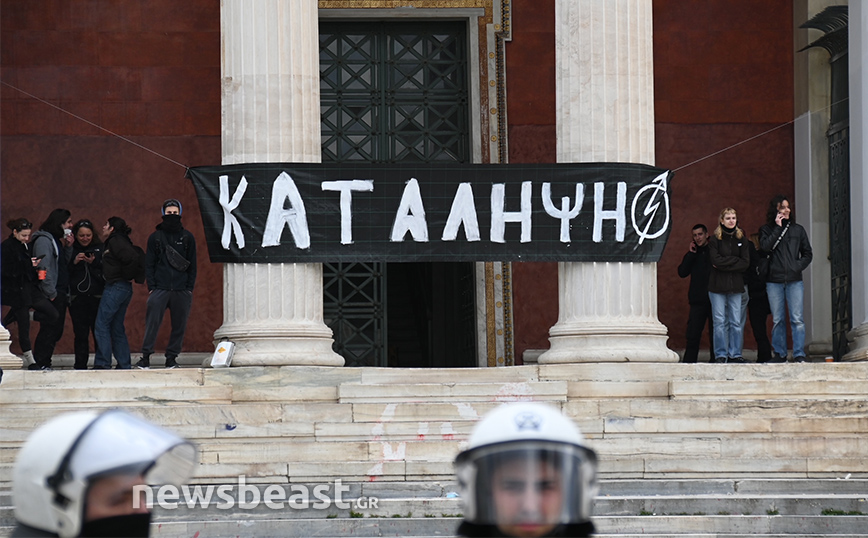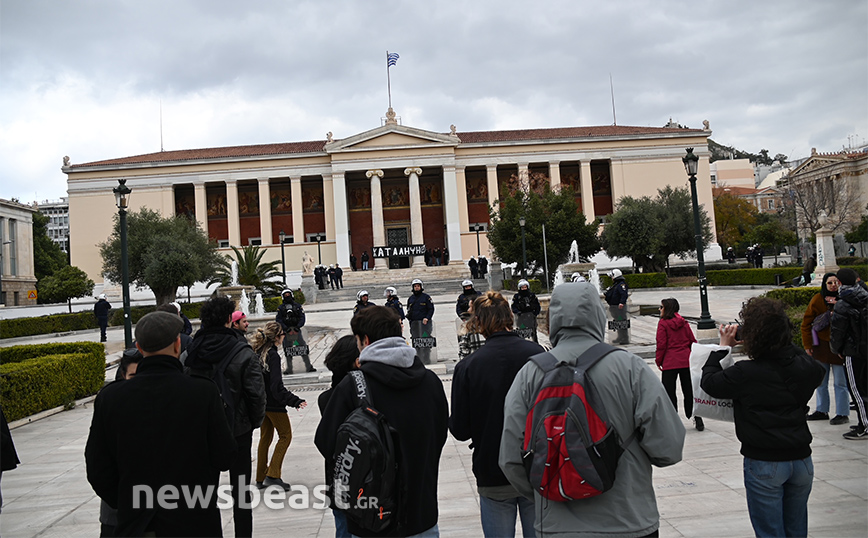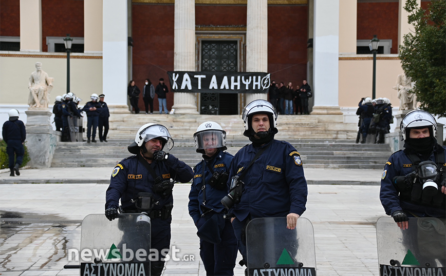 Αστυνομικές δυνάμεις αναπτύχθηκαν έξω από την κτήριο της πρυτανείας του ΕΚΠΑ, στην Πανεπιστημίου, το οποίο τελεί υπό κατάληψη.