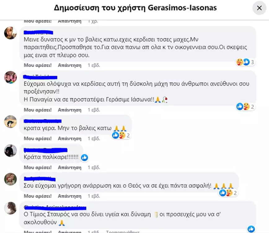 Ενδεικτικό του κύματος αγάπης και συμπαράστασης στον νεαρό φοιτητή που δίνει μάχη για τη ζωή του είναι τα δεκάδες μηνύματα που δέχεται στο λογαριασμό του στο facebook με ευχές να καταφέρει να βγει υγιής από αυτή τη δύσκολη μάχη, σύμφωνα με το magnesianews.gr.