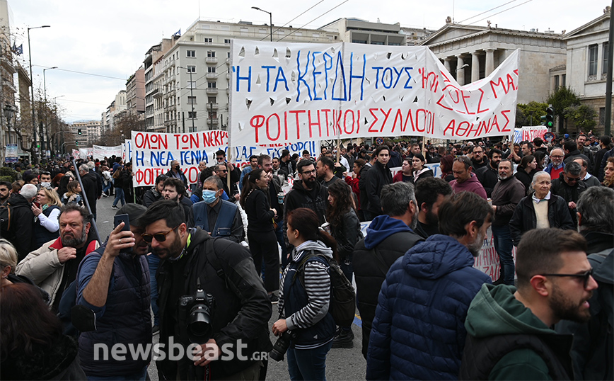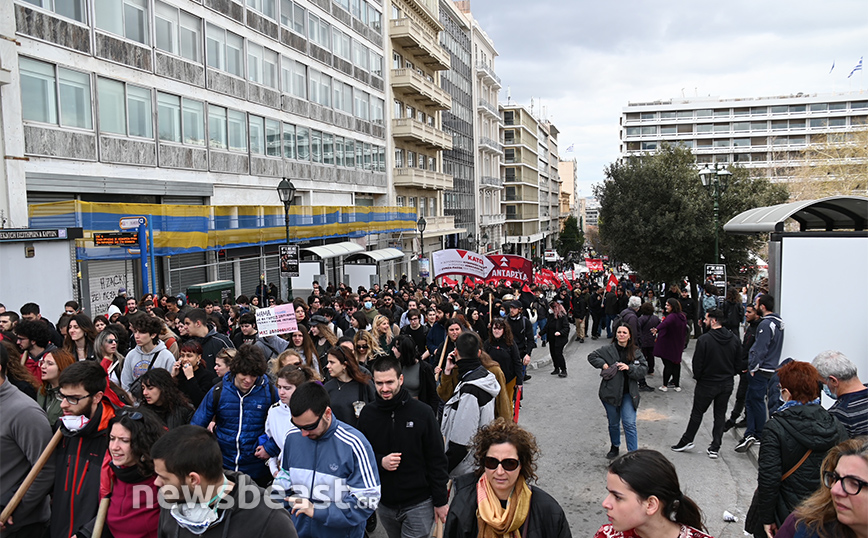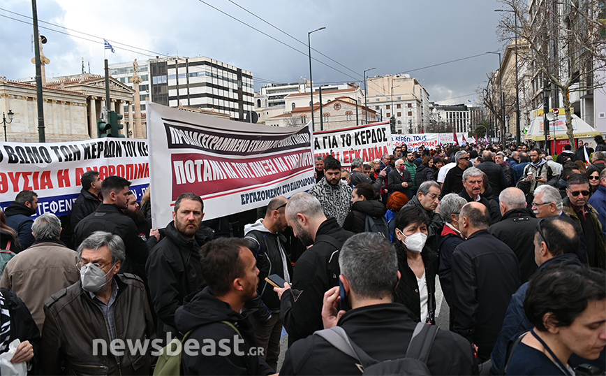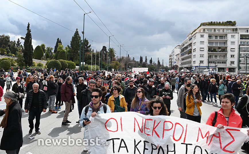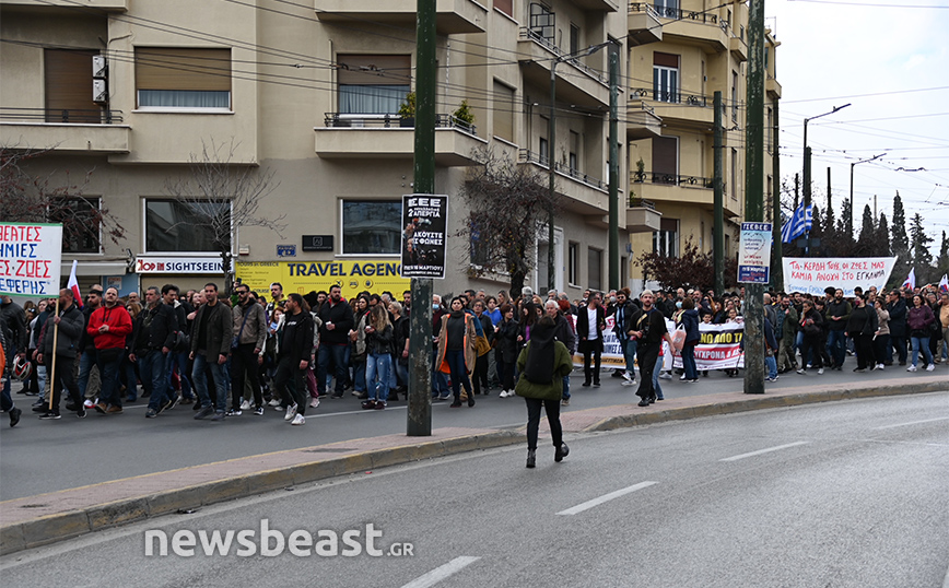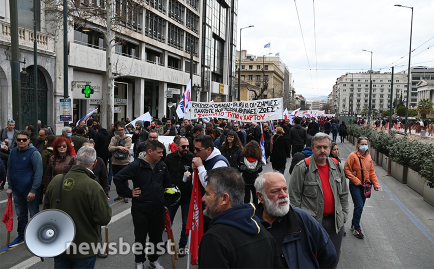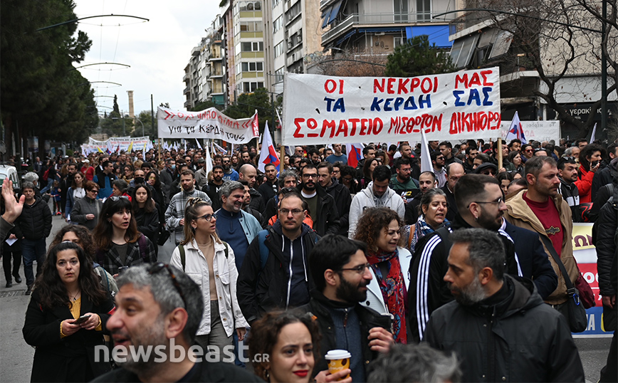 To ΠΑΜΕ και οι υπόλοιποι, που ξεκίνησαν από τα Προπύλαια, στις 12:00 έφτασαν μπροστά από τη Βουλή και συνέχισαν την πορεία τους για τα γραφεία της Hellenic Train που βρίσκονται στη Λεωφόρου Συγγρού με κεντρικό σύνθημα: «Εσείς μετράτε κέρδη και ζημιές, εμείς μετράμε ανθρώπινες ζωές».