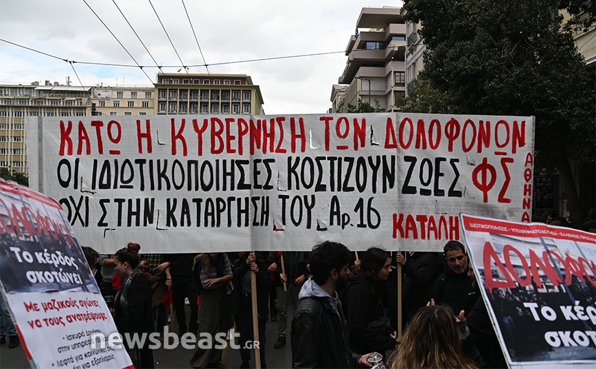 Ένταση σημειώθηκε στις 13:45 στο Σύνταγμα. Σύμφωνα με πληροφορίες, έγιναν ρίψεις μολότοφ με τις αστυνομικές δυνάμεις να απαντούν με κρότου λάμψης και χρήση χημικών.