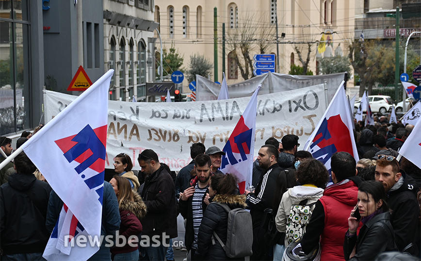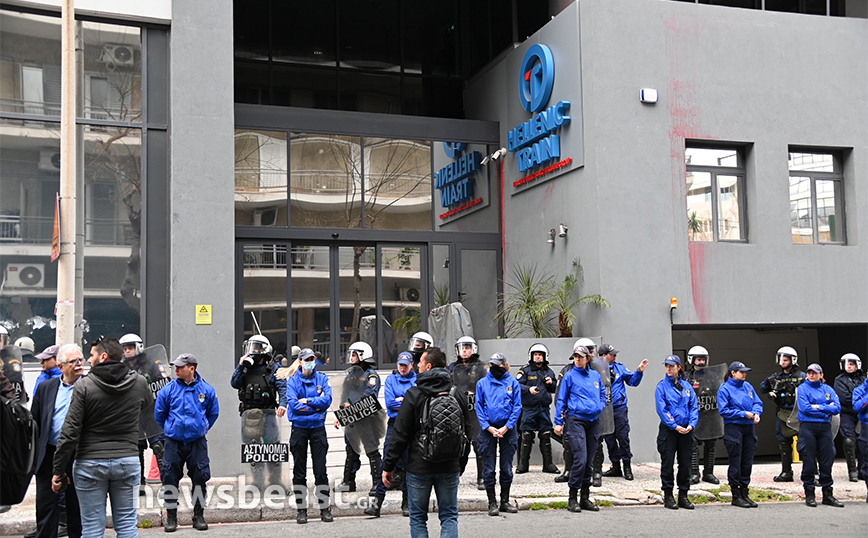 Φωτογραφίες από την πορεία με προορισμό τα γραφεία της Hellenic Train: