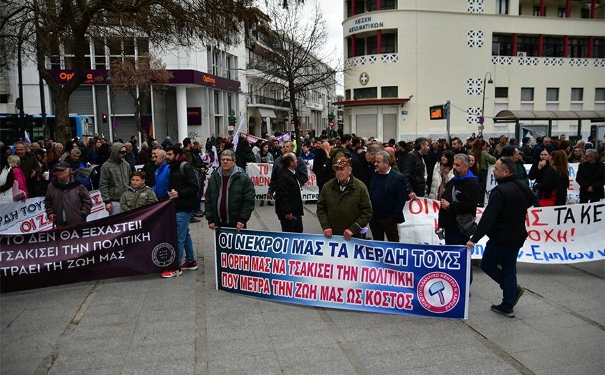Με συνθήματα όπως «τα κέρδη τους, οι ζωές μας» και «η άνοιξη σταμάτησε στα Τέμπη», οι Λαρισαίοι δηλώνουν δυναμικά το παρόν στην πανελλαδική γενική απεργία, όπως μεταδίδει το larissanet.gr.