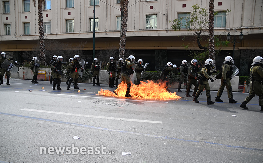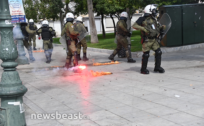 Σύμφωνα με πληροφορίες, έγιναν ρίψεις μολότοφ με τις αστυνομικές δυνάμεις να απαντούν με κρότου λάμψης και χρήση χημικών. Η κατάσταση στο κέντρο της Αθήνας είναι αποπνικτική.