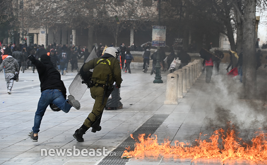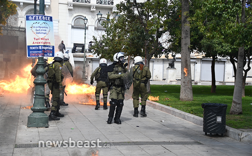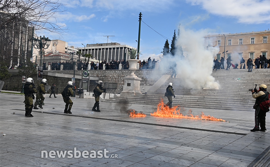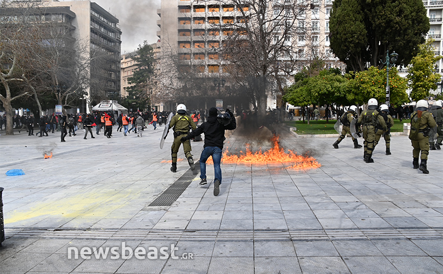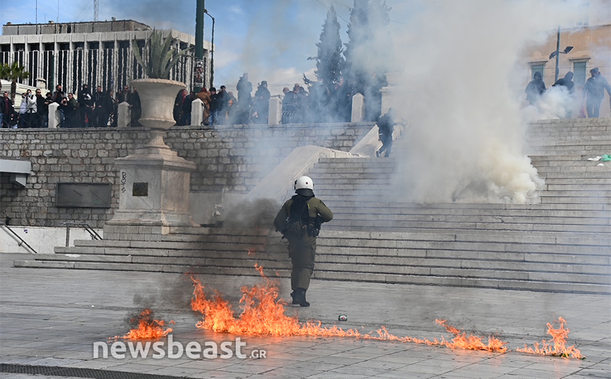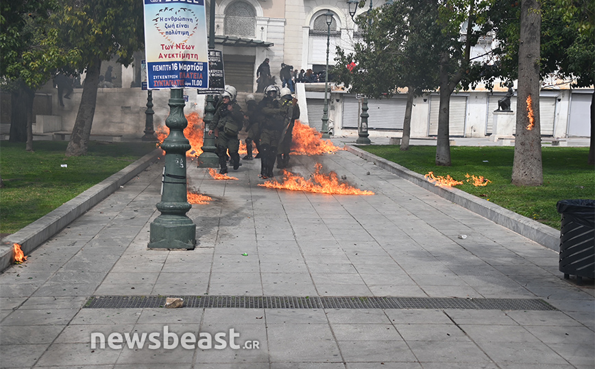 Η ένταση ξεκίνησε από το κάτω μέρος της πλατείας Συντάγματος και στη συνέχεια επεκτάθηκε και στο πάνω μέρος της.