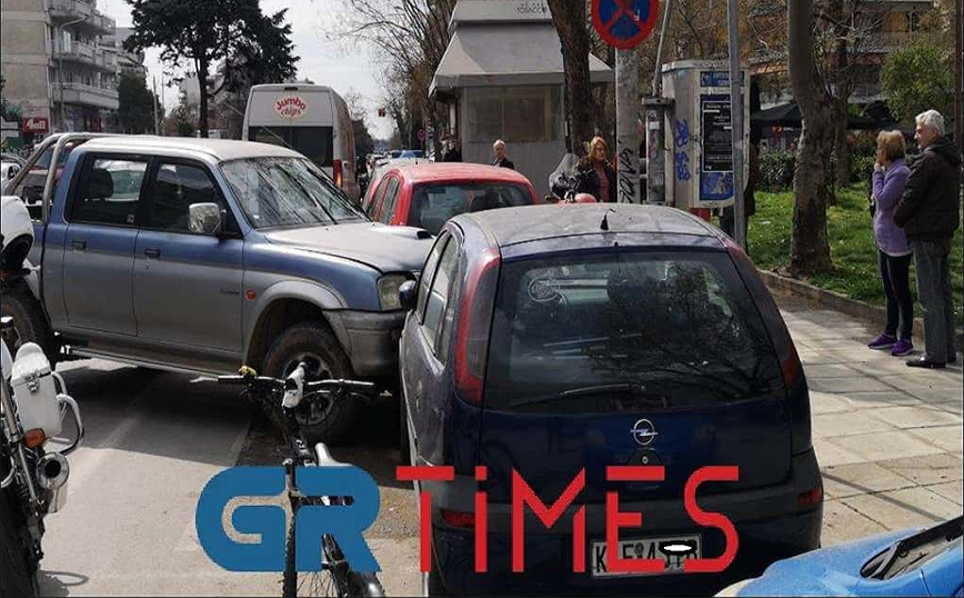 Ένα αγροτικό αυτοκίνητο έφερε τα πάνω κάτω σήμερα στους δρόμους της Θεσσαλονίκης, όταν παρεκτράπηκε από την πορεία του και συγκρούστηκε σε σταθμευμένα οχήματα στη λεωφόρο Κωνσταντίνου Καραμανλή, στο ύψος της Μπότσαρη.