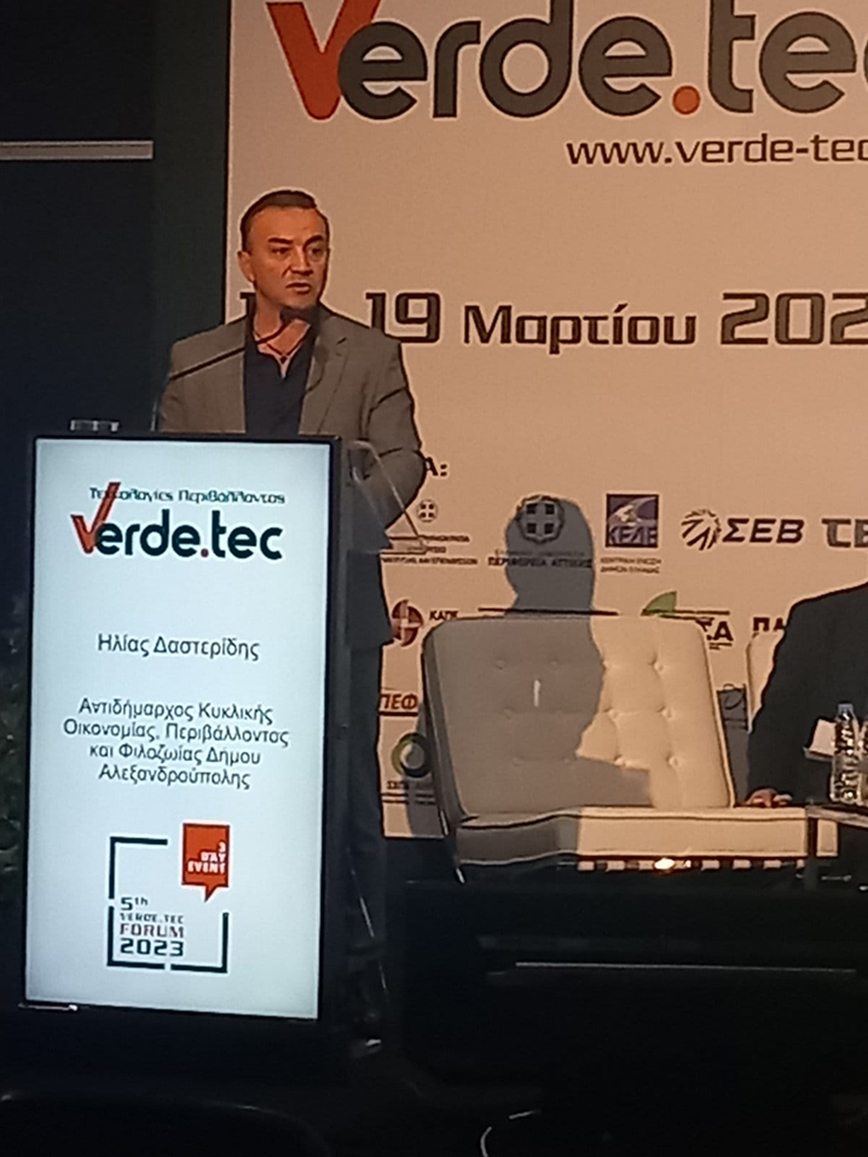 Δυναμική παρουσία είχε ο δήμος Αλεξανδρούπολης συμμετέχοντας με περίπτερο στην 5η Διεθνή Έκθεση Verde.Tec για τις Πράσινες Τεχνολογίες, την Κυκλική Οικονομία και τις Smart Cities, που έλαβε χώρα στην Αθήνα στις 17-19 Μαρτίου.