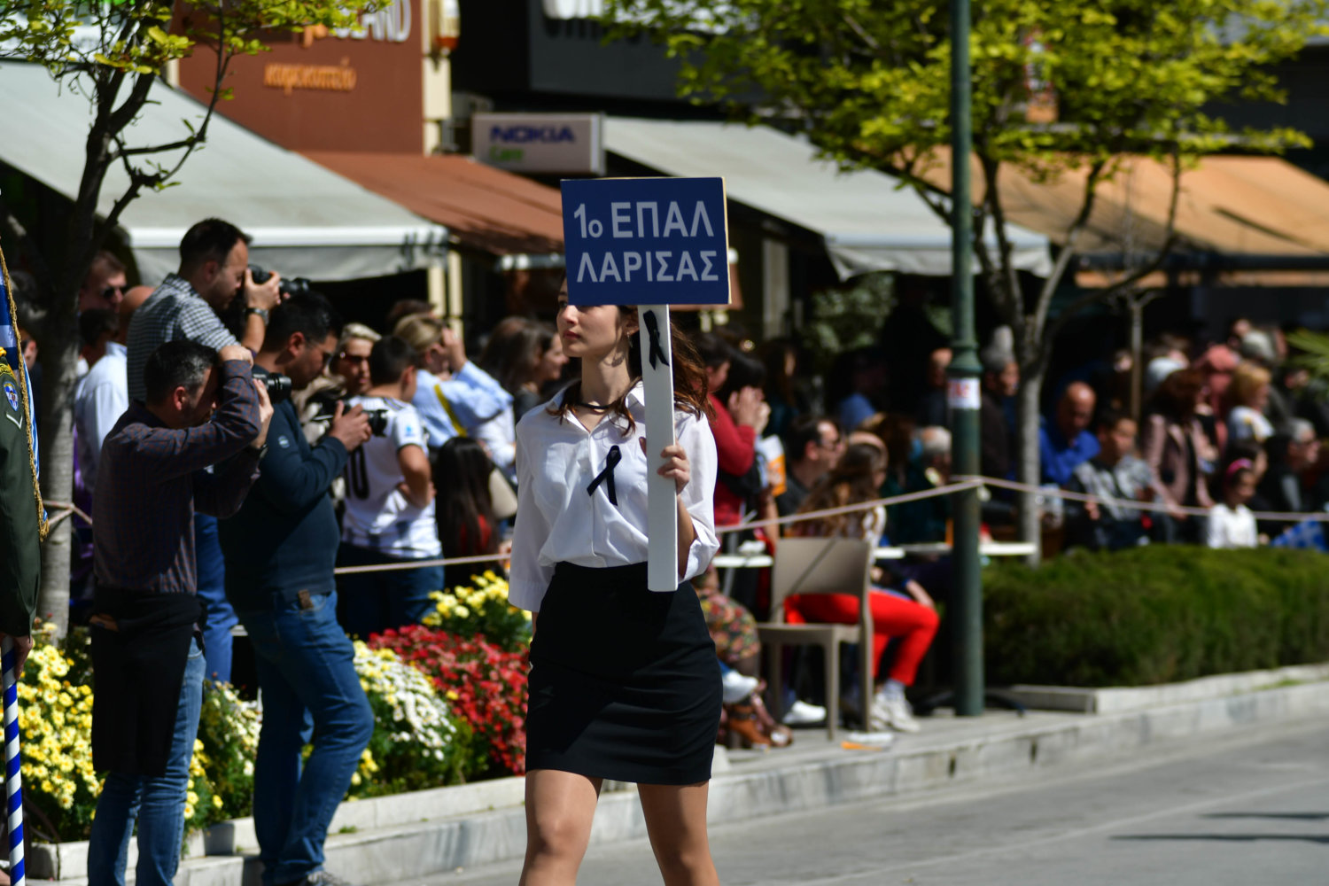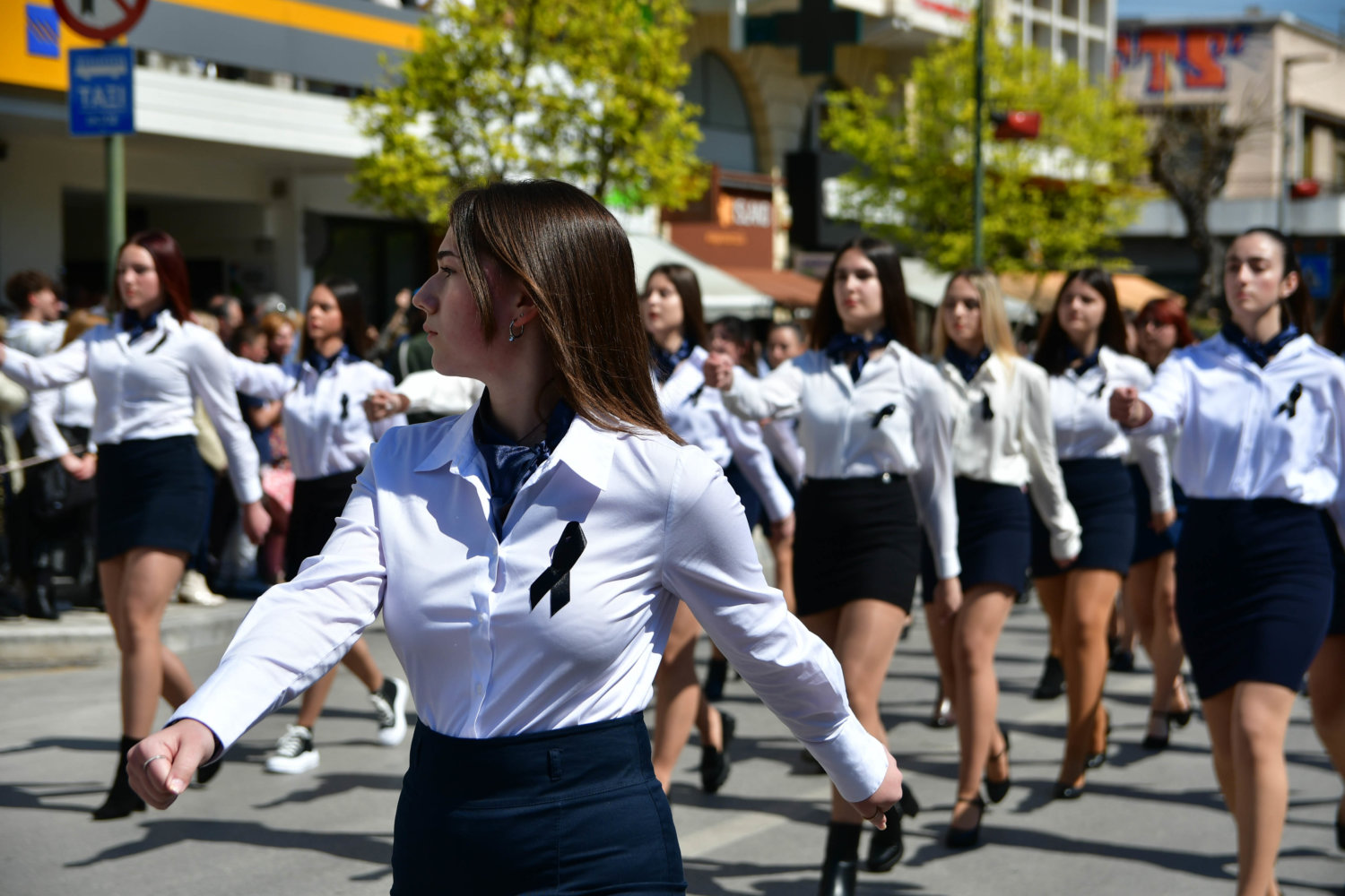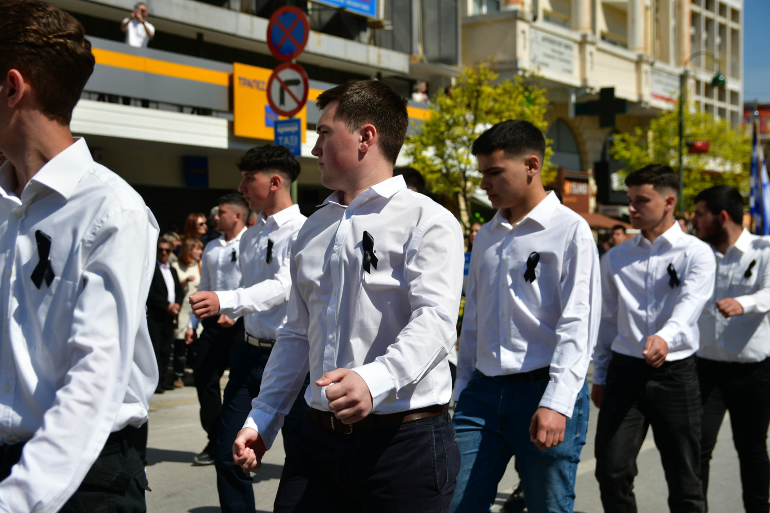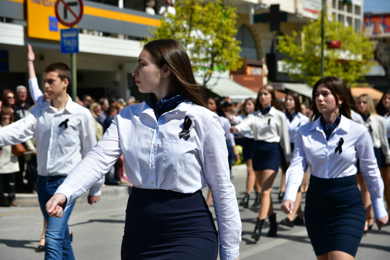 Πολλοί μαθητές Λυκείου επέλεξαν να παρελάσουν, φορώντας μαύρες κορδέλες στο στήθος ή πένθος στο μπράτσο, ενώ άλλοι τοποθέτησαν στις στολές του κονκάρδες που έγραφαν «ήταν έγκλημα».