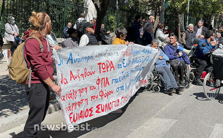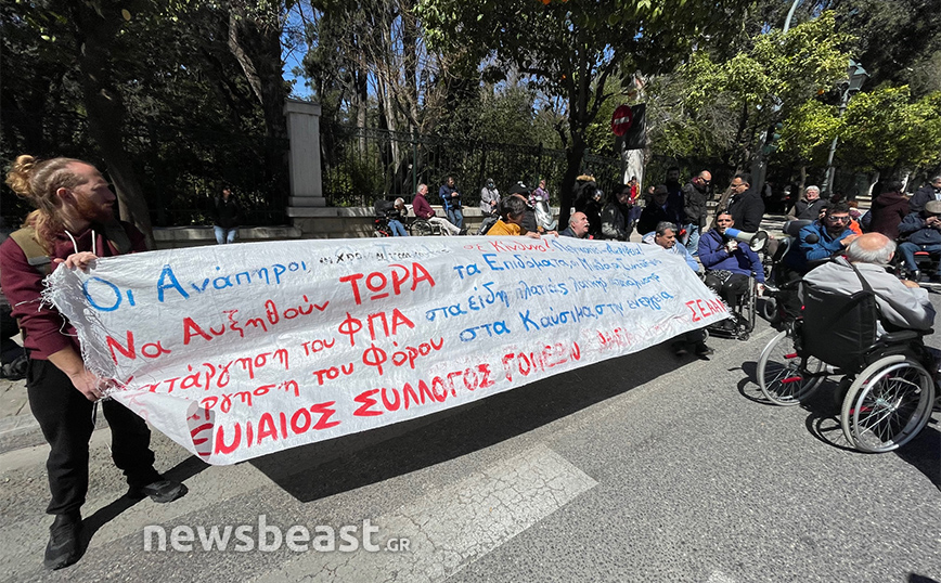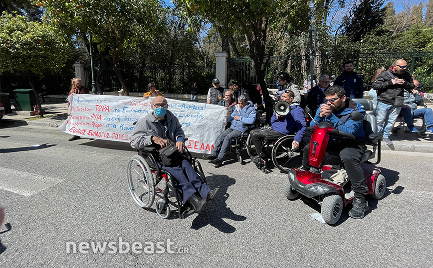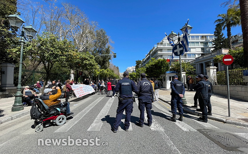 Διαμαρτυρία στο Μέγαρο Μαξίμου πραγματοποιούν 40 περίπου παραπληγικοί για τα μέτρα ασφάλειας και προστασίας στη δουλειά και την καθημερινότητά τους και για την ακρίβεια, που όπως, χαρακτηριστικά λένε «μας σαρώνει».