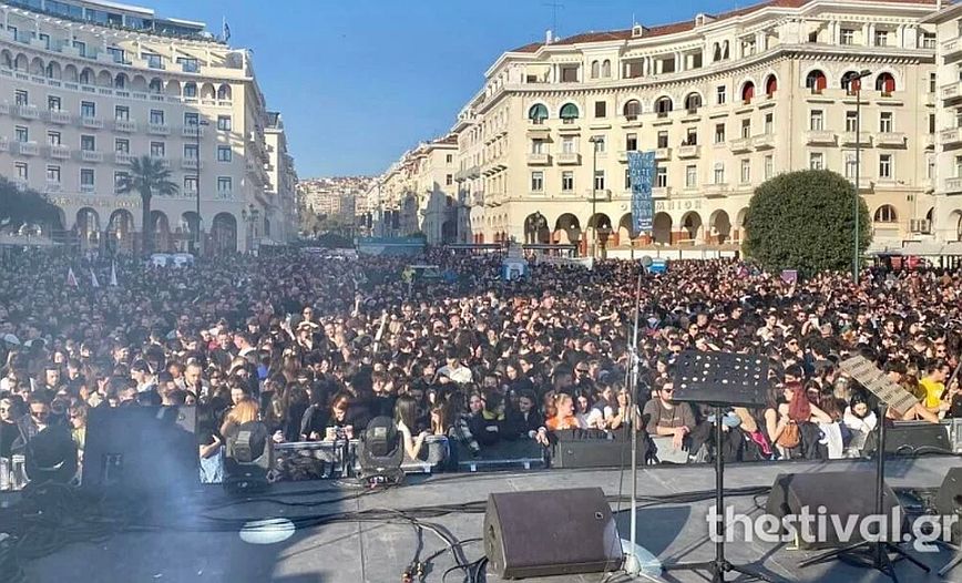 Παρουσία πλήθους κόσμου και τη συμμετοχή γνωστών, αγαπημένων καλλιτεχνών είναι σε εξέλιξη η ανοιχτή συναυλία στην πλατεία Αριστοτέλους που διοργανώνει το Σωματείο Εργαζομένων της ΕΥΑΘ, με την υποστήριξη του Συλλόγου Μουσικών Βορείου Ελλάδος, με στόχο την υπεράσπιση του δημόσιου χαρακτήρα του νερού.