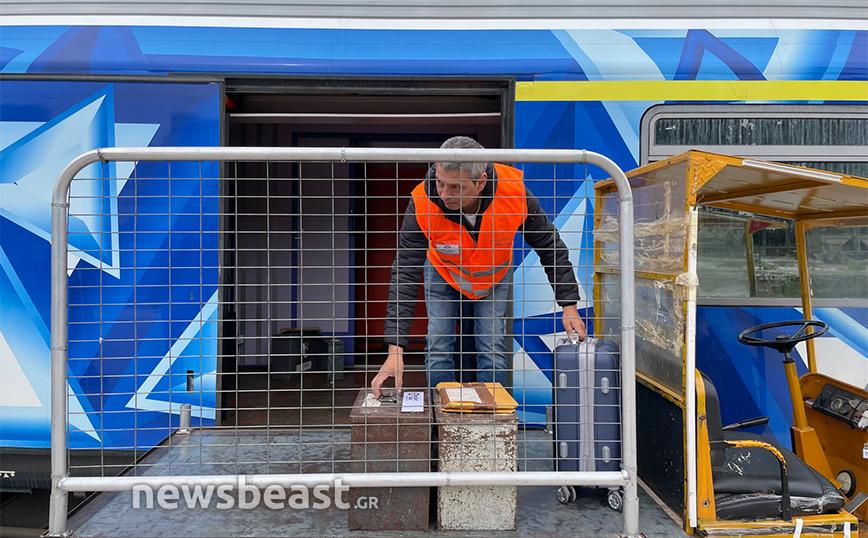 Σε φωτογραφίες ο Παναγιώτης Τερεζάκης φαίνεται να μην μπορεί να συγκρατήσει τα δάκρυα στα μάτια του και κοιτώντας τις ράγες, ενώ το τρένο ξεκινά για τον προορισμό του, να ξεσπά σε κλάματα.