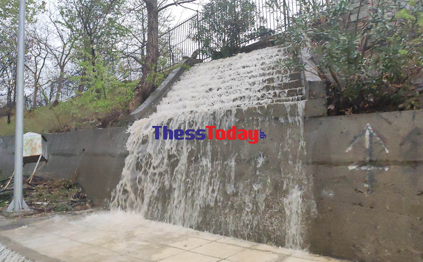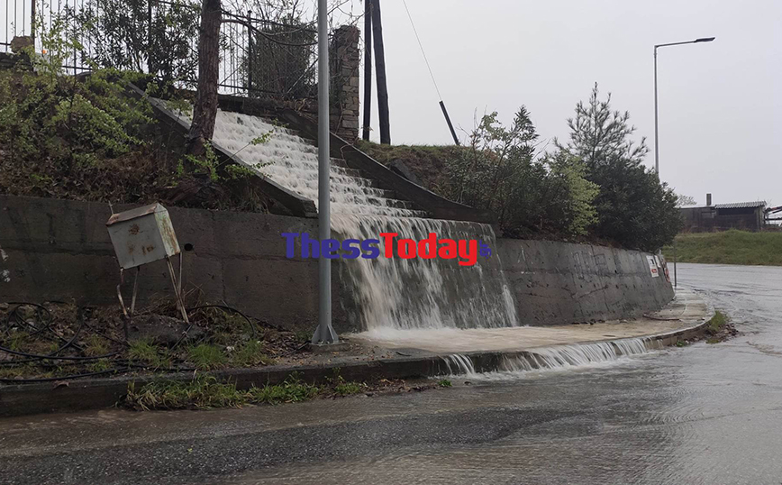 Στα Κοιμητήρια της Θέρμης η ποσότητα των ομβρίων υδάτων ήταν αρκετή για να σχηματιστούν καταρράκτες, εμποδίζοντας τους διερχόμενους οδηγούς, οι οποίοι απέφευγαν τα σημεία που το νερό ήταν αρκετό.