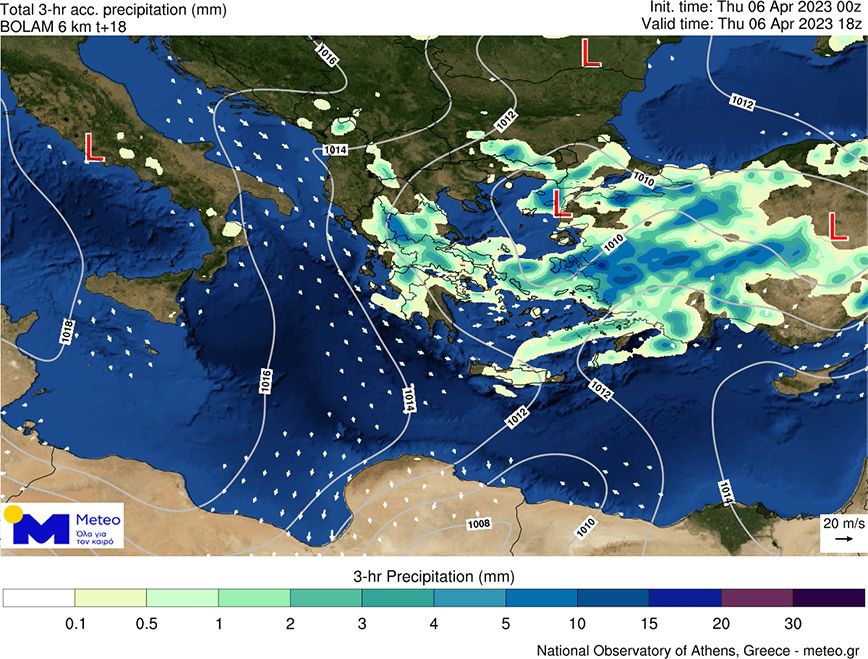 Αλλάζει ξανά το σκηνικό του καιρού και, σύμφωνα με τα προγνωστικά στοιχεία του Εθνικού Αστεροσκοπείου Αθηνών/ meteo.gr, οι βροχές και οι καταιγίδες που εκδηλώνονται κατά τόπους τις πρωινές ώρες της Πέμπτης 06/04 αναμένεται κατά τη διάρκεια της ημέρας να επηρεάσουν τις περισσότερες περιοχές της χώρας. Τα φαινόμενα που τοπικά θα είναι έντονα, το βράδυ θα περιοριστούν στη Θράκη, στο Ανατολικό Αιγαίο και στα Δωδεκάνησα.