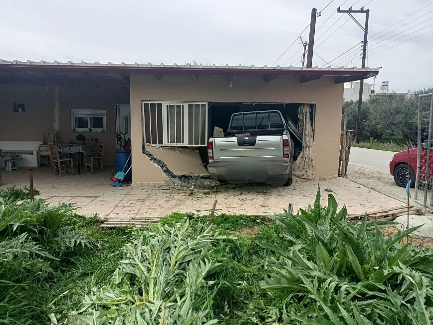 «Το απίστευτο συμβάν συνέβη στην περιοχή όπου βρίσκονται οι αποθήκες της Ένωσης Μεσαράς, όταν ο ηλικιωμένος οδηγός του αγροτικού κατέληξε μέσα στο σπίτι μαζί με το όχημά του. Σύμφωνα με πληροφορίες έχασε το έλεγχο του οχήματος του μετά από σύγκρουση με άλλο αυτοκίνητο καταλήγοντας να γκρεμίσει συρμάτινο φράχτη, να διασχίσει τον κήπο με τις αγκινάρες και να μπει κυριολεκτικά μέσα στο σπίτι που ευτυχώς, όπως προαναφέραμε, εκείνη την ώρα ήταν άδειο από τους νοικοκυραίους.