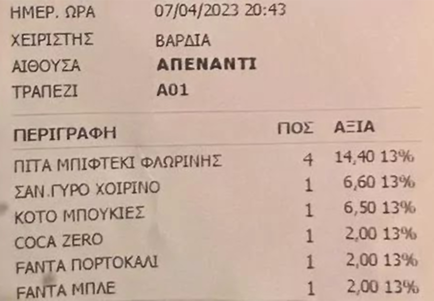 Και επειδή και ο ίδιος ο ένστολος δεν πίστευε αυτό που έβλεπε στην απόδειξη, πήγε στην υπάλληλο για «διευκρινιστική»! «Κύριε, το γράφουμε και στον κατάλογό μας, το σάντουιτς με γύρο κοστίζει 6,60 ευρώ»! O ένστολος, πλήρωσε και έφυγε. Όντως ο καταστηματάρχης ήταν απόλυτα νόμιμος, αφού έγραφε στον κατάλογό του, αλλά και στον τιμοκατάλογο στις εταιρείες διανομής φαγητού πως το σάντουιτς με γύρο κοστίζει… 6,60.