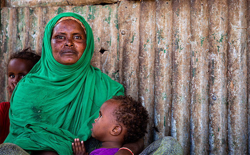 «Θα είναι υγιές;» Η Halimo περιμένει το 9ο παιδί της σε έναν καταυλισμό εσωτερικά εκτοπισμένων στη Σομαλία. Η περιοχή πλήττεται από τη χειρότερη ξηρασία των τελευταίων δεκαετιών. Το νερό είναι δυσεύρετο και οι μανάδες μπορεί να περπατούν ώρες για να το εξασφαλίσουν για την οικογένεια. Ως εκ τούτου, δεν μπορούν ούτε να καλλιεργήσουν, αλλά ούτε και να συντηρήσουν τα ζώα τους, με αποτέλεσμα να αντιμετωπίζουν πρόβλημα επιβίωσης. Η ActionAid παρέχει έκτακτη οικονομική ενίσχυση και προμήθειες φαγητού στους ευάλωτους πληθυσμούς της ανατολικής Αφρικής, ώστε να ανταποκριθούν σε αυτήν την κρίση. «Μπορεί να μου πάρει και 5 ώρες για να βρω νερό και κάποιες φορές μπορεί να μην βρω καθόλου. Αυτό έχει συνέπειες και στην τροφή μας. Η δίψα κάνει τα μωρά να κλαίνε…», δηλώνει η Halimo με απελπισία.