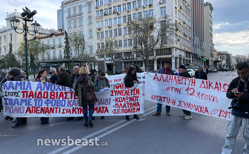 Οι δυο συγκεντρώσεις συνέπεσαν και οι διαδηλωτές ένωσαν τις φωνές τους. Μάλιστα όλοι μαζί, προχώρησαν σε μικρής διάρκειας συμβολικό αποκλεισμό της οδού Αθηνάς.