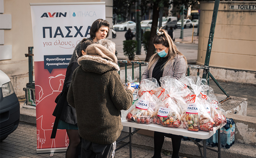 Κατά τη διάρκεια της πρωτοβουλίας, εθελοντές εργαζόμενοι της AVIN βρέθηκαν στην πλατεία Κουμουνδούρου και προσέφεραν Πασχαλινά Καλάθια με γιορτινά τρόφιμα και γλυκίσματα (πασχαλινά αυγά, τσουρέκι, κουλούρια, σοκολατένια γλυκά) σε συνανθρώπους μας σε ανάγκη. Η πρωτοβουλία εντάσσεται στη συνεχή προσπάθεια της Ithaca να προσφέρει χαρά, συντροφιά, αξιοπρέπεια και αγάπη στους συνανθρώπους μας που διαβιούν στον δρόμο ή σε επισφαλείς συνθήκες και σε οικογένειες σε ευαλωτότητα.