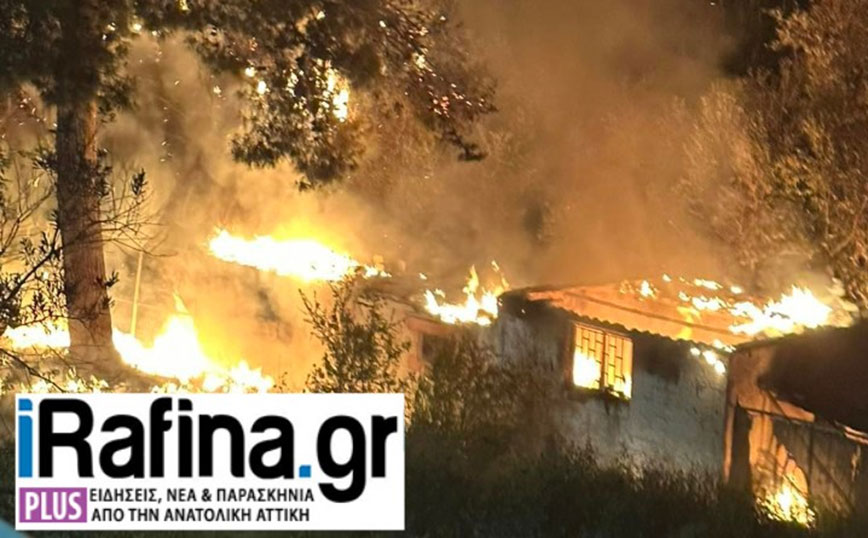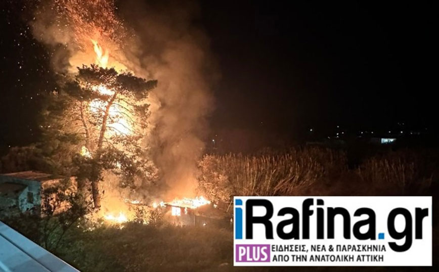 Μεγάλη φωτιά ξέσπασε το βράδυ της Μεγάλης Τετάρτης σε χαμόσπιτο που βρίσκεται πίσω από σούπερ μάρκετ, δίπλα στο Μεγάλο Ρέμα Ραφήνας. Σύμφωνα με πληροφορίες του irafina.gr στο σπίτι αυτό κατοικούν αλλοδαποί ενώ από την φωτιά έχει καταστραφεί ολοσχερώς.
