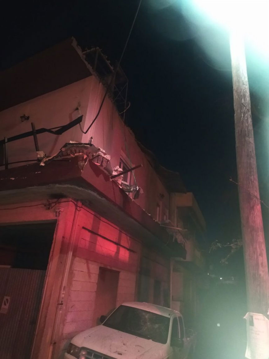Οι άνδρες της Πυροσβεστικής απομάκρυναν τα κομμάτια του μπαλκονιού που έπεσαν στο οδόστρωμα.